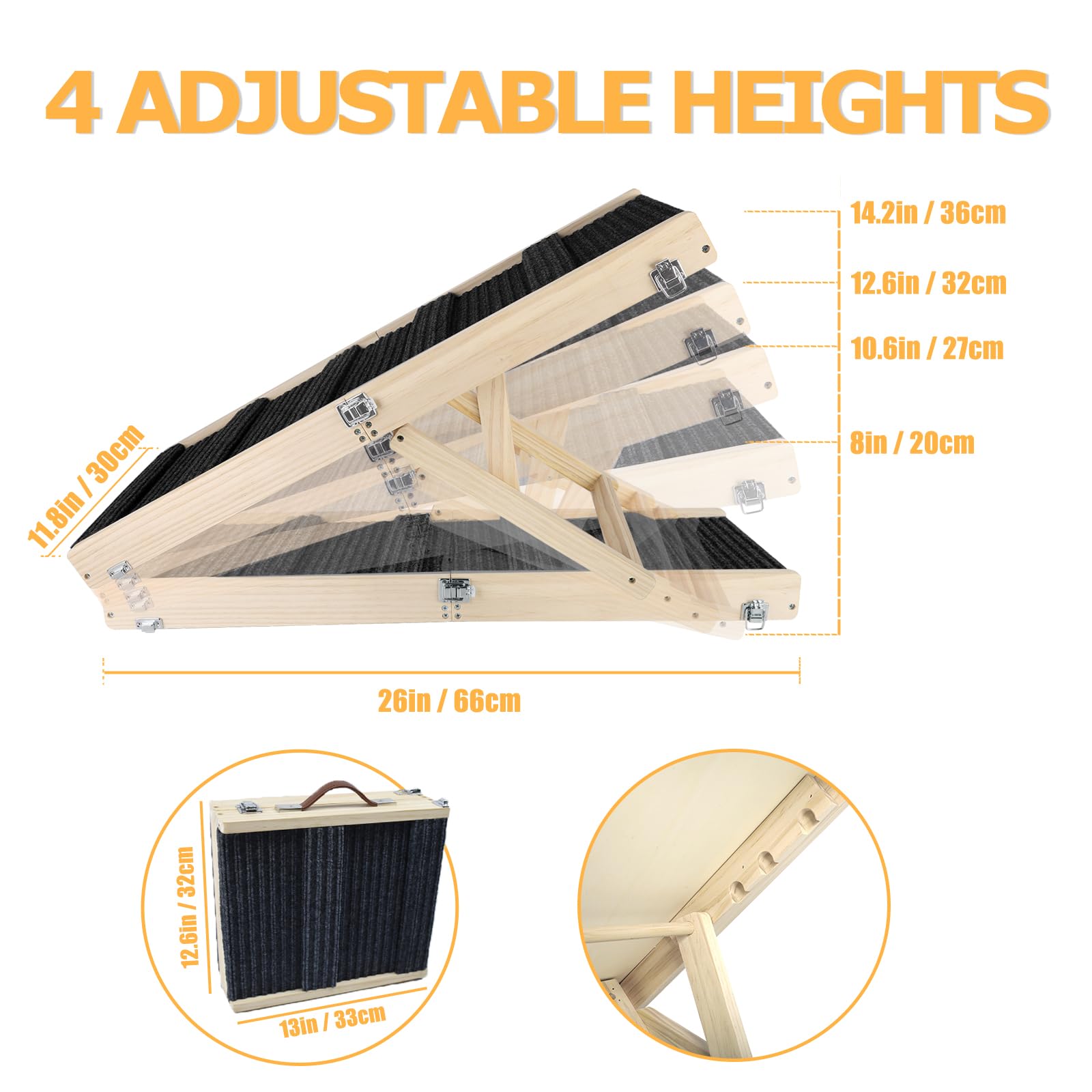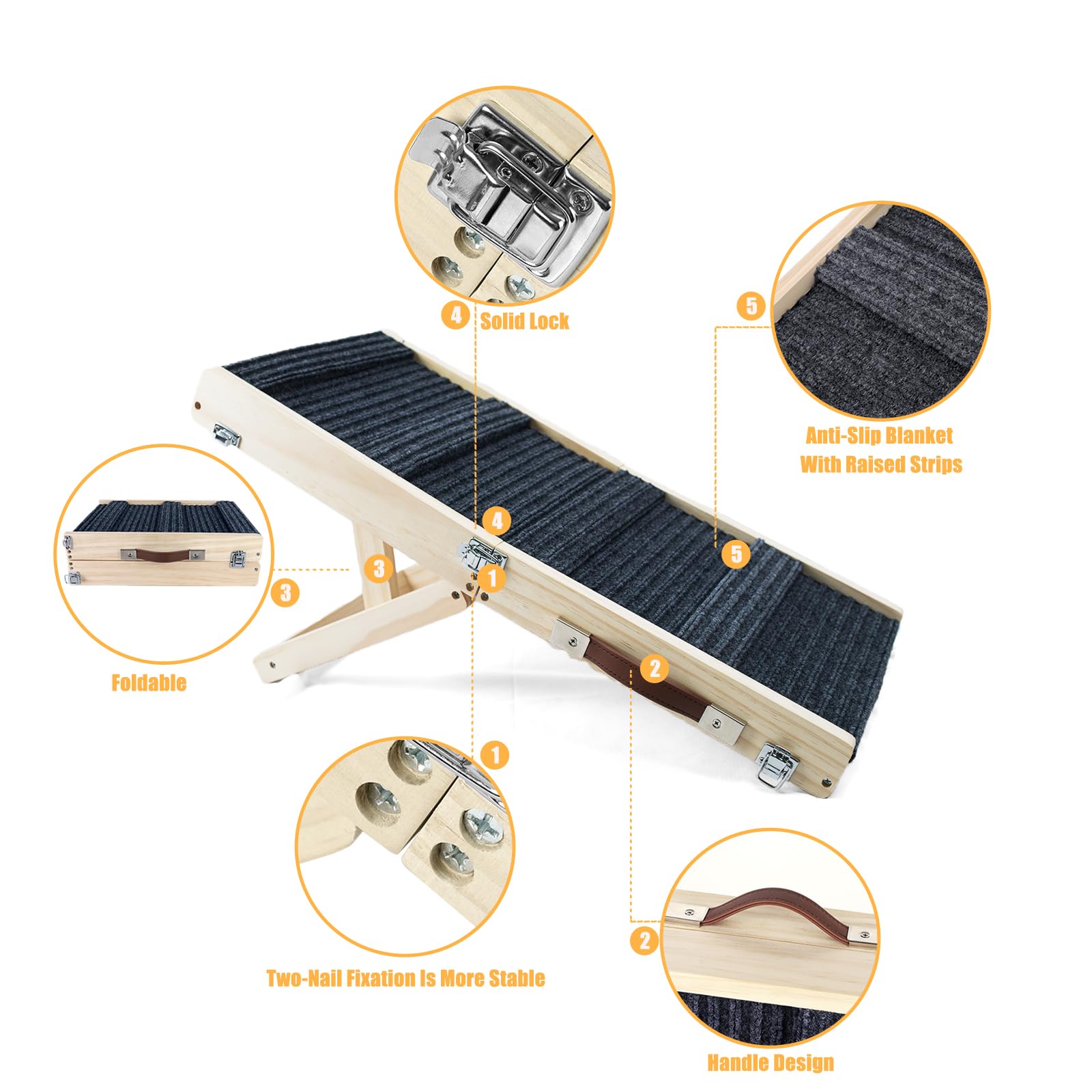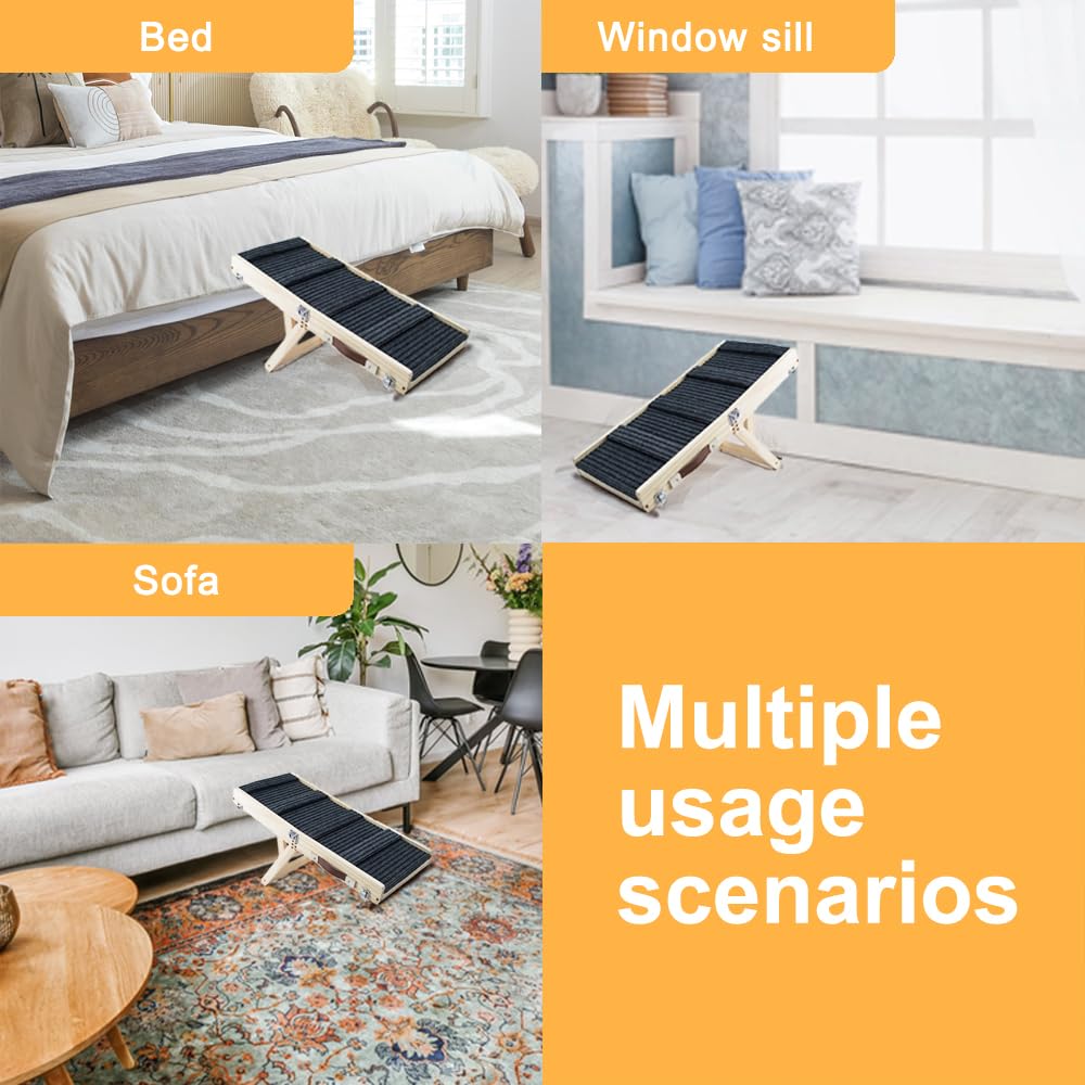 Aanpasbare hondenhelling voor bedontwerpen (hoogte, materiaal, afwerking)