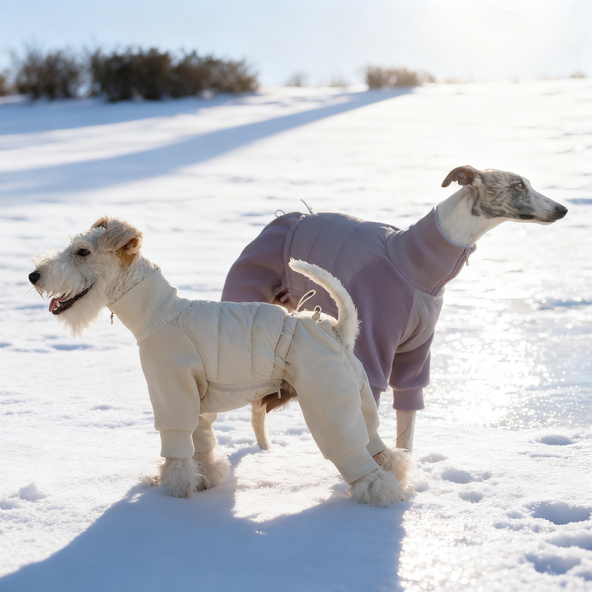 A: We use premium materials including weatherproof fabrics, breathable cottons, and stretch knits – all selected for durability and comfort for large breeds.
