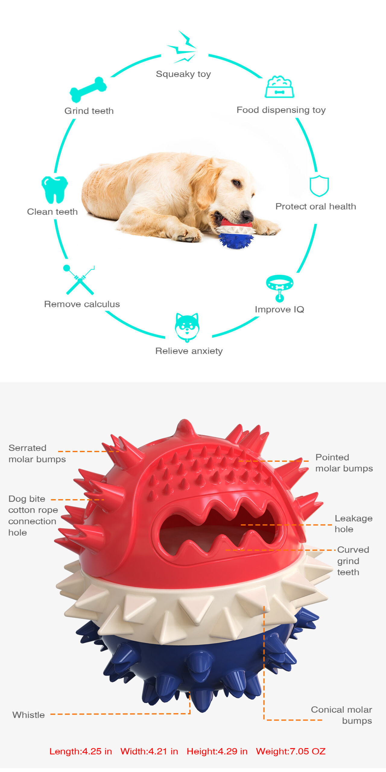 [SQUEAKY PET TOY] There is a sounding device at the bottom of the product. When the dog bites and plays with this product, it can make a squeak to attract the dog’s attention and increase the dog’s interest in playing.