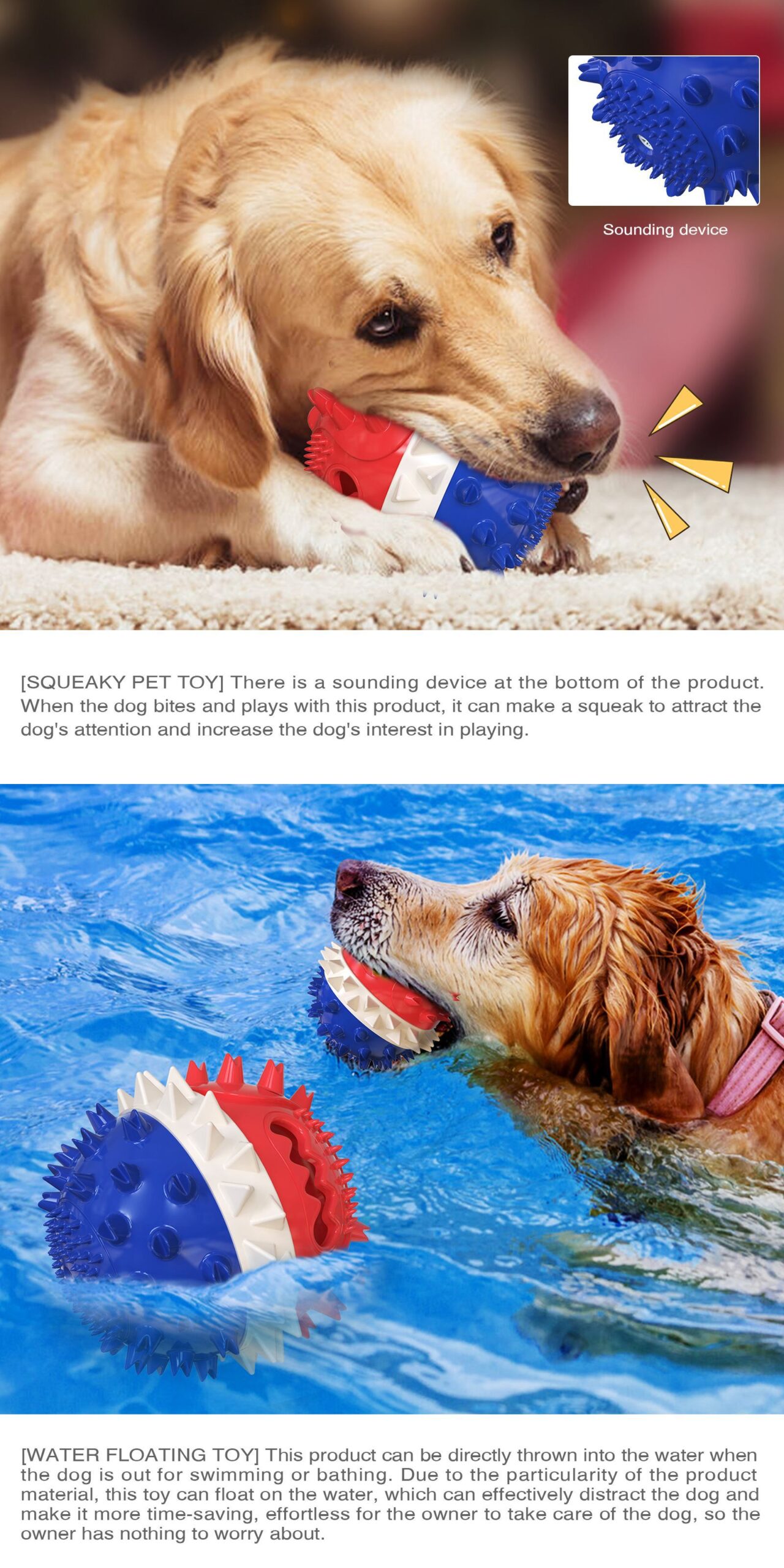 [WATER FLOATING TOY] This product can be directly thrown into the water when the dog is out for swimming or bathing. Due to the particularity of the product material, this toy can float on the water, which can effectively distract the dog and make it more timesaving, effortless for the owner to take care of the dog, so the owner has nothing to worry about.