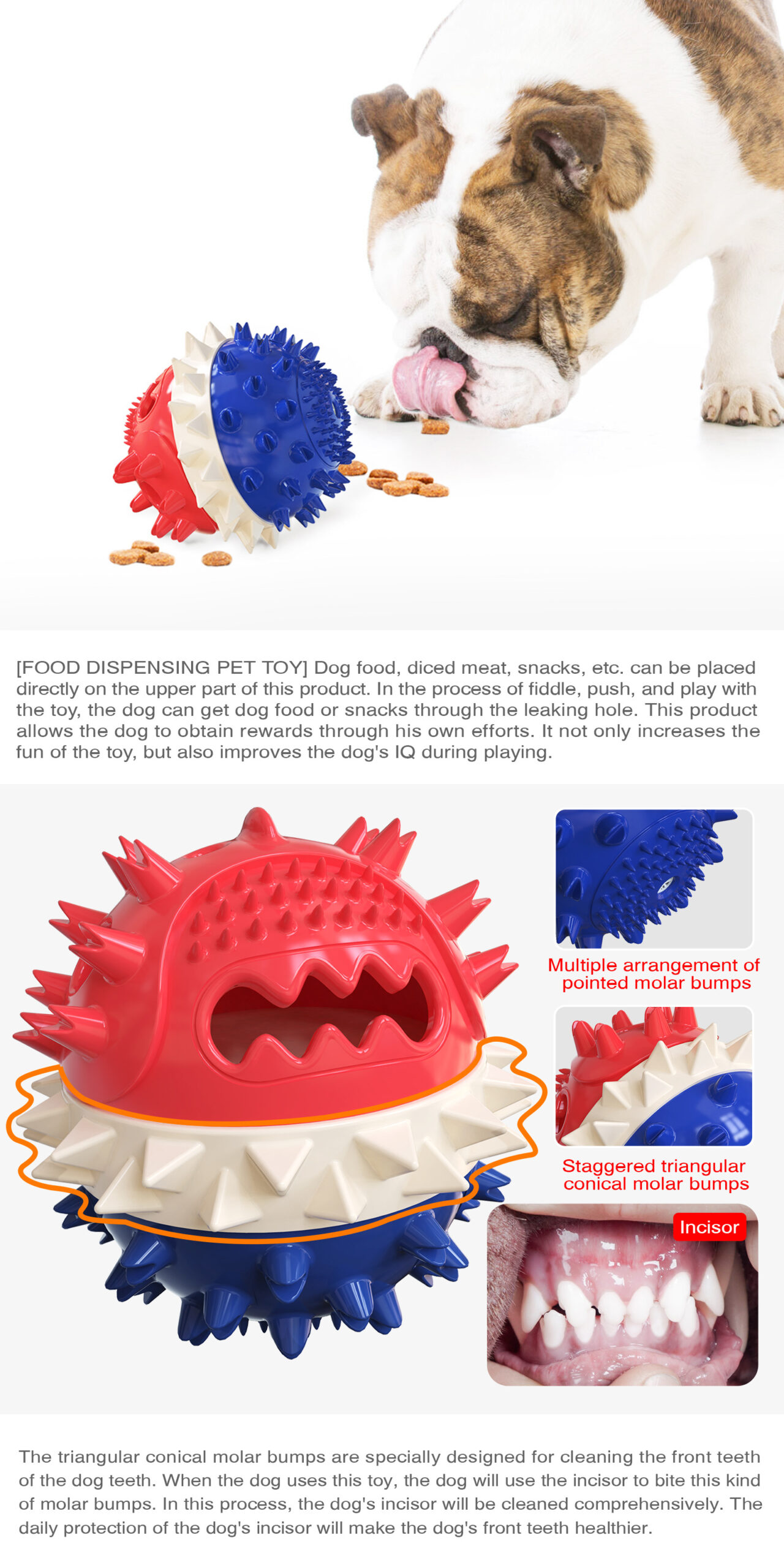[FOOD DISPENSING PET TOY] Dog food, diced meat, snacks, etc. can be placed directy on the upper part of this product In the process of fiddle, push, and play with the toy, the dog can get dog food or snacks through the leaking hole. This product allows the dog to obtain rewards through his own efforts. It not only increases the fun of the toy, but also improves the dog’s lQ during playing.