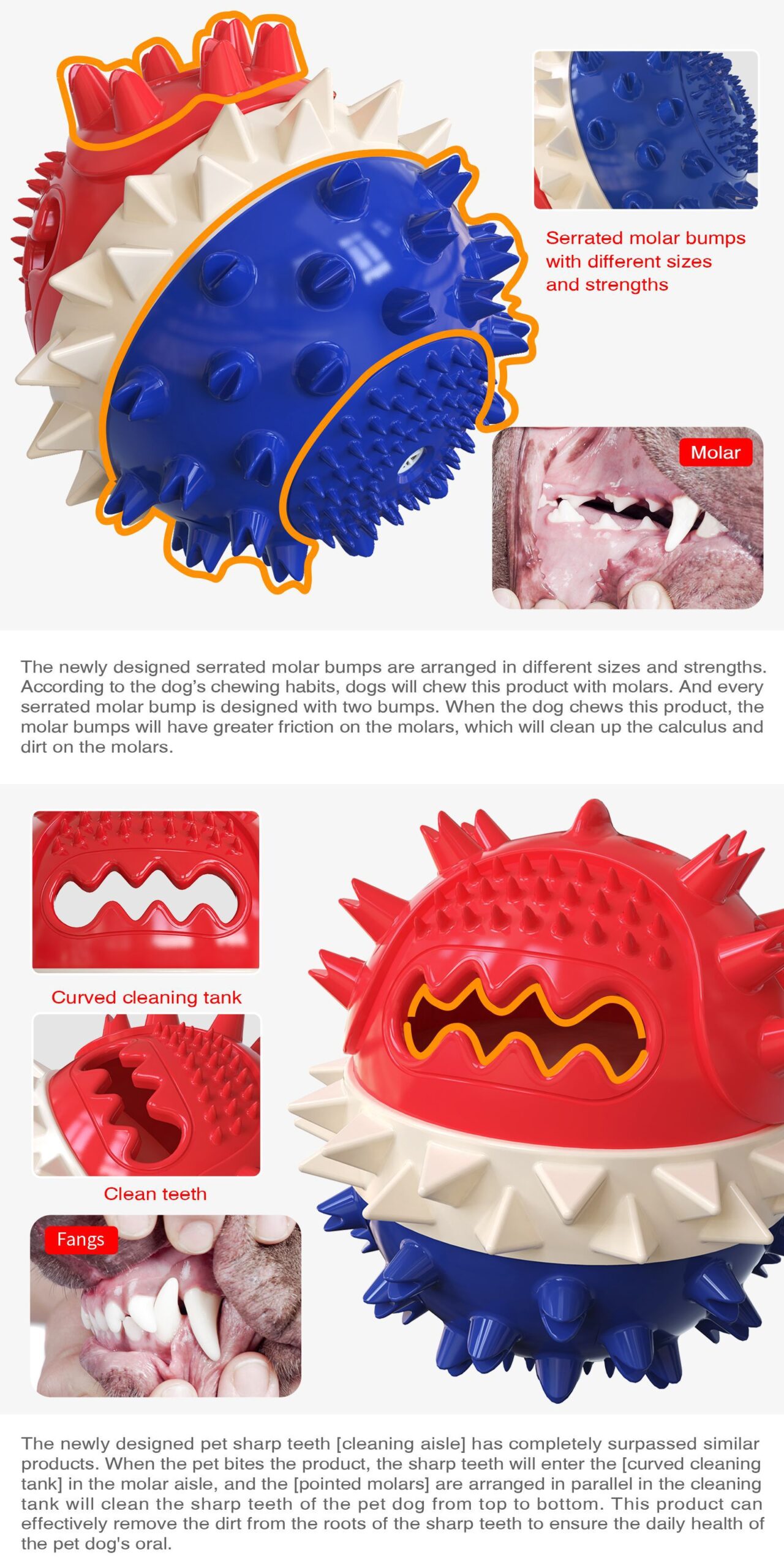 The triangular conical molar bumps are specially designed for cleaning the front teeth of the dog teeth. When the dog uses this toy, the dog will use the incisor to bite this kind of molar bumps. In this process, the dog’s incisor will be cleaned comprehensively. The daily protection of the dog’s incisor will make the dog’s front teeth healthier.
