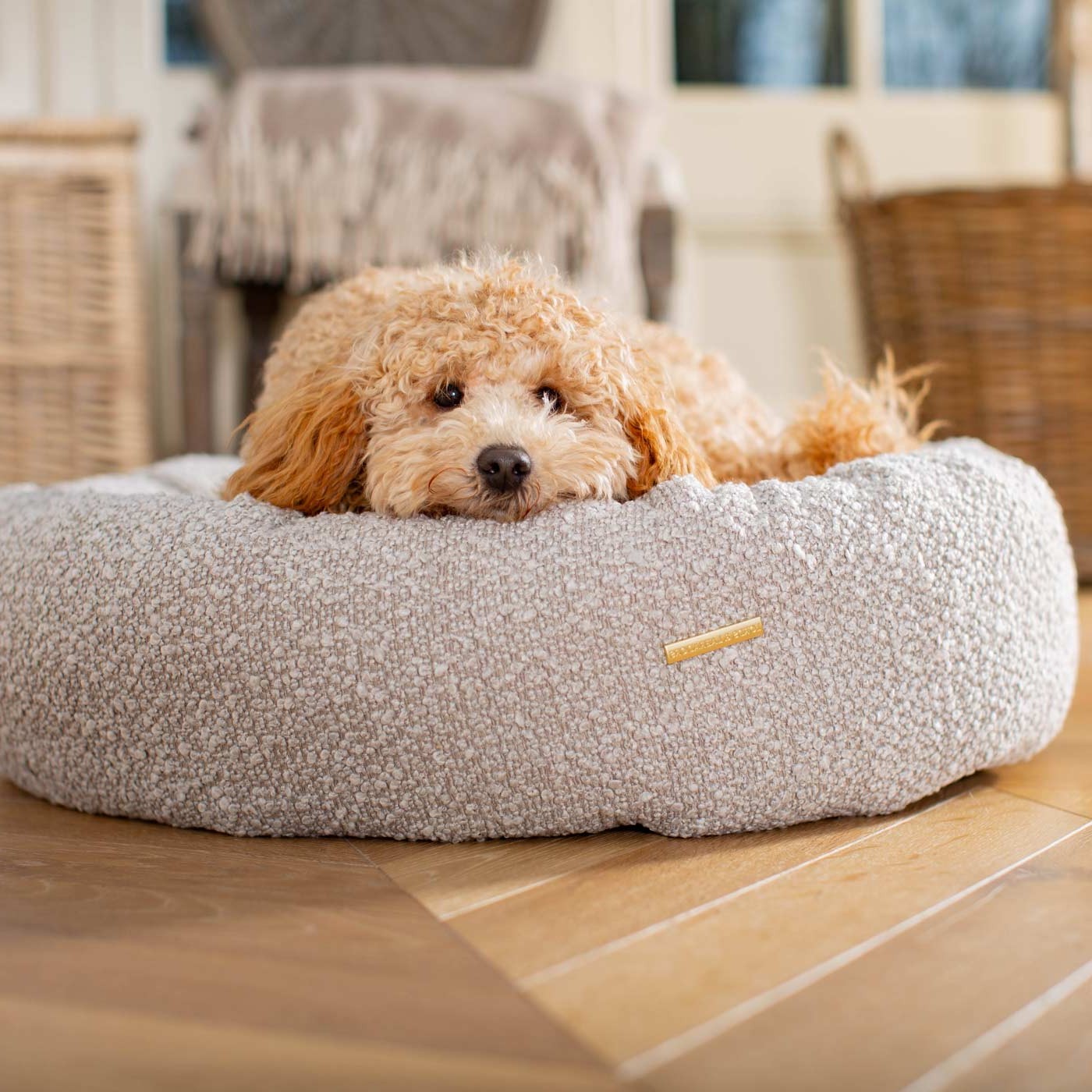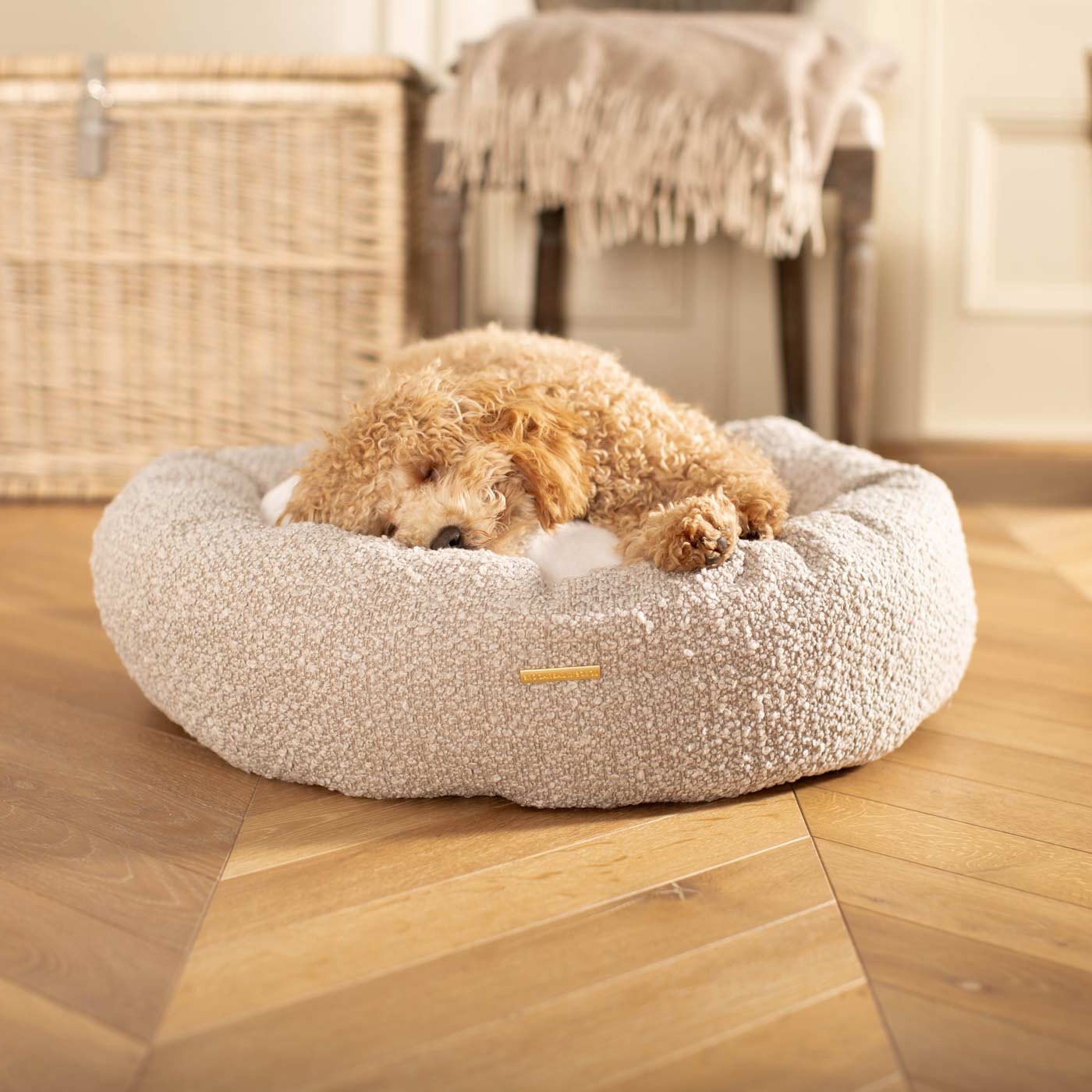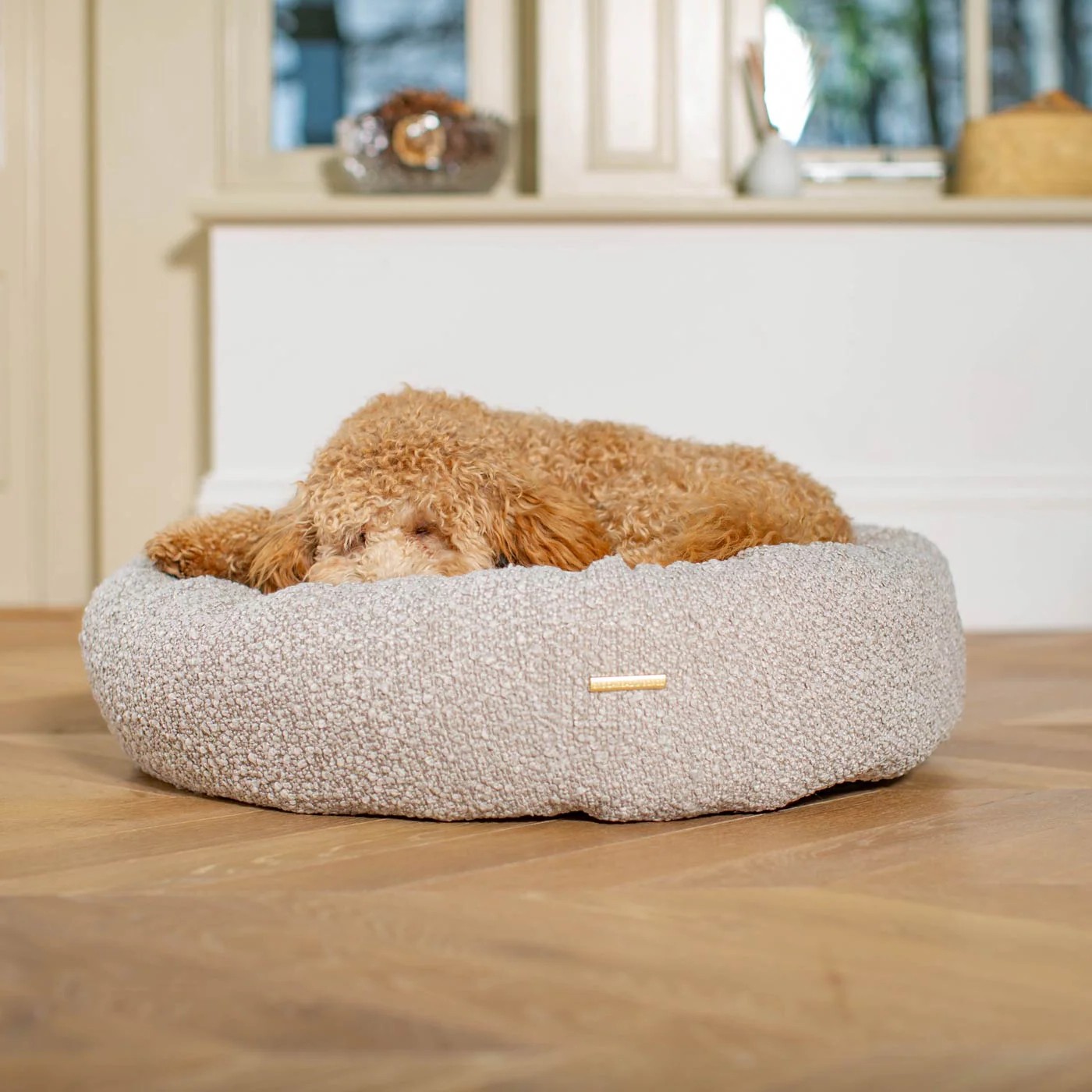 The Donut Bed is the ultimate in comfort for your pup. Handmade in plush Mink Bouclé, it features cushioned walls for added support and a non-slip base for safety. Available in two sizes, this bed is perfect for all breeds. Keep your furry friend cosy and protected with this super-soft, machine-washable bed.
