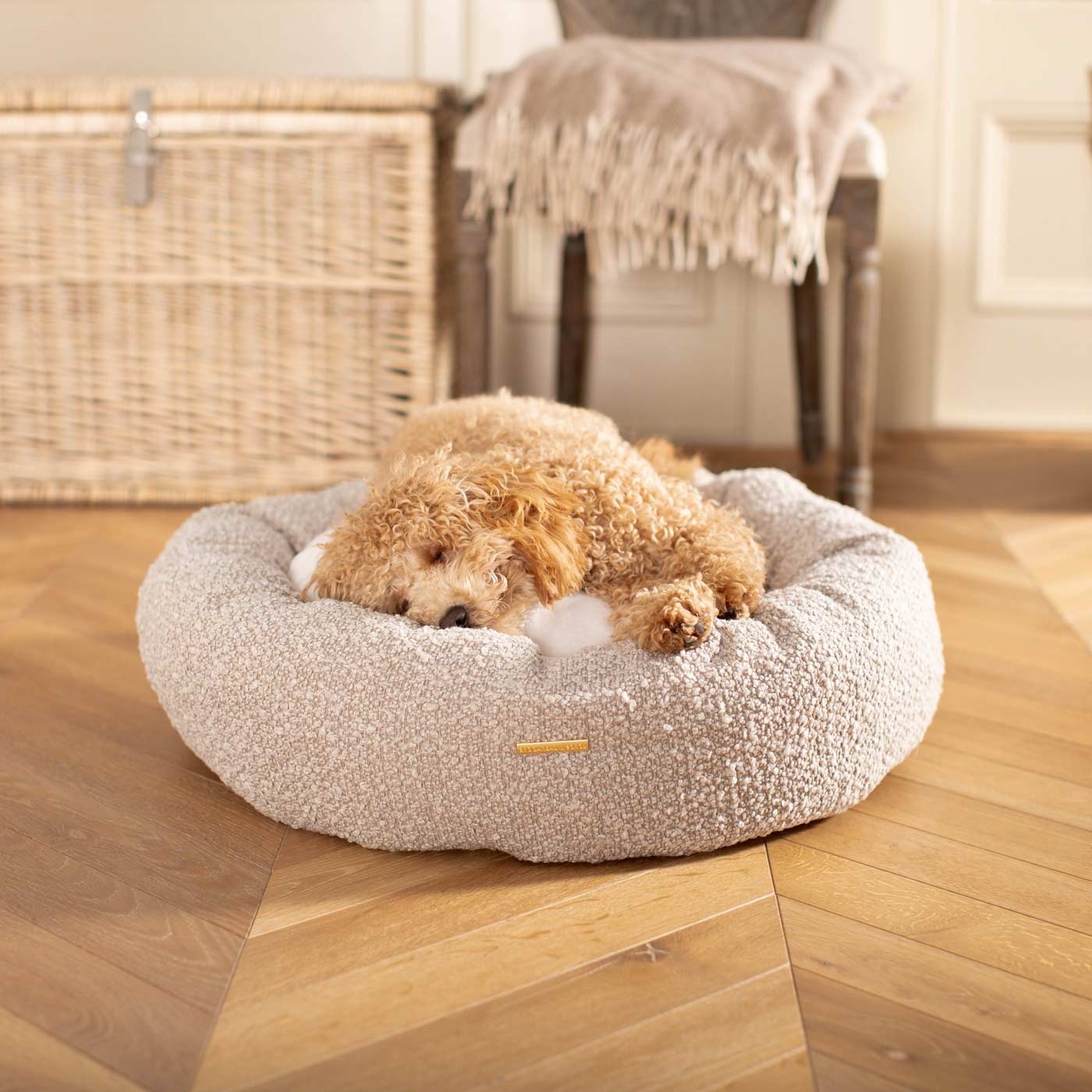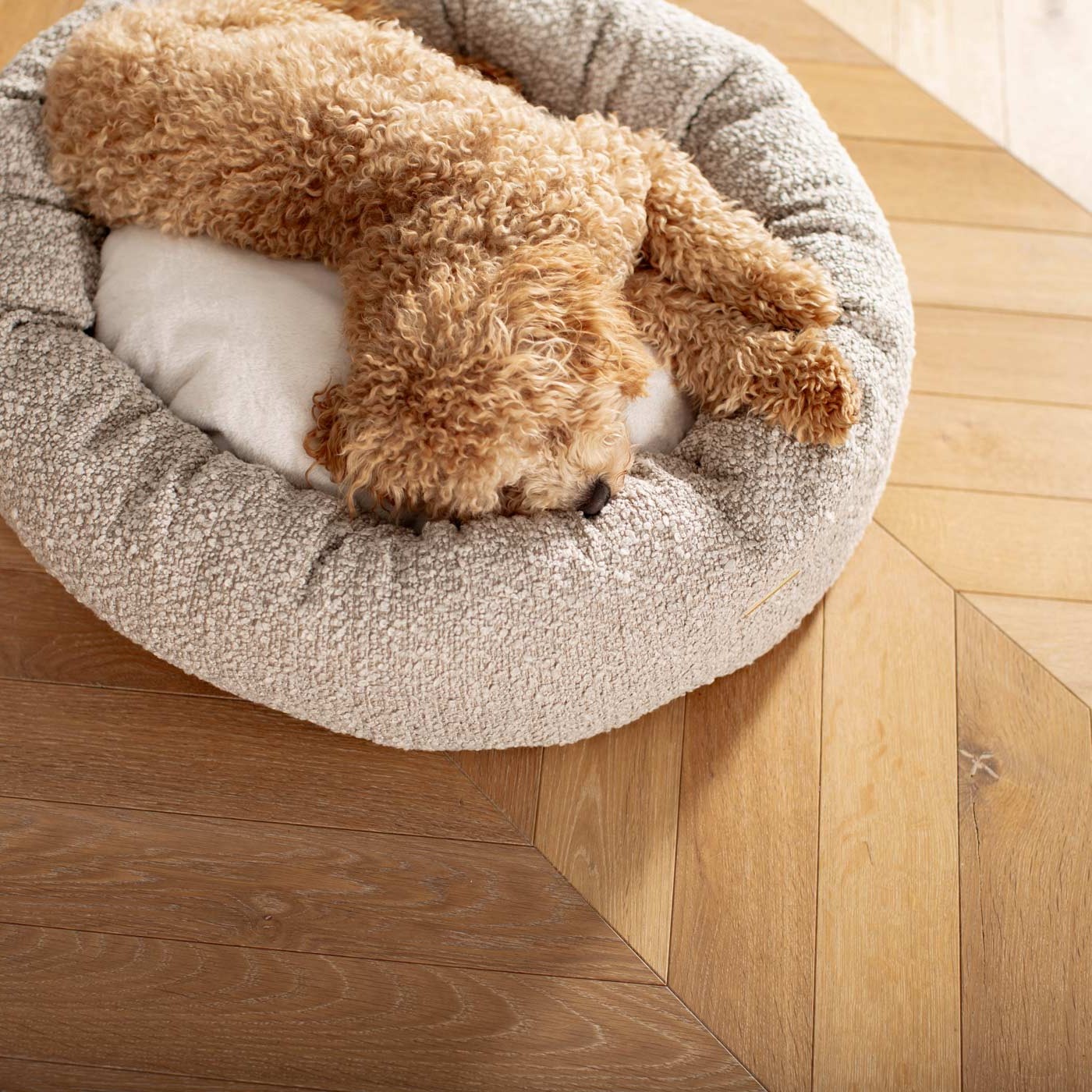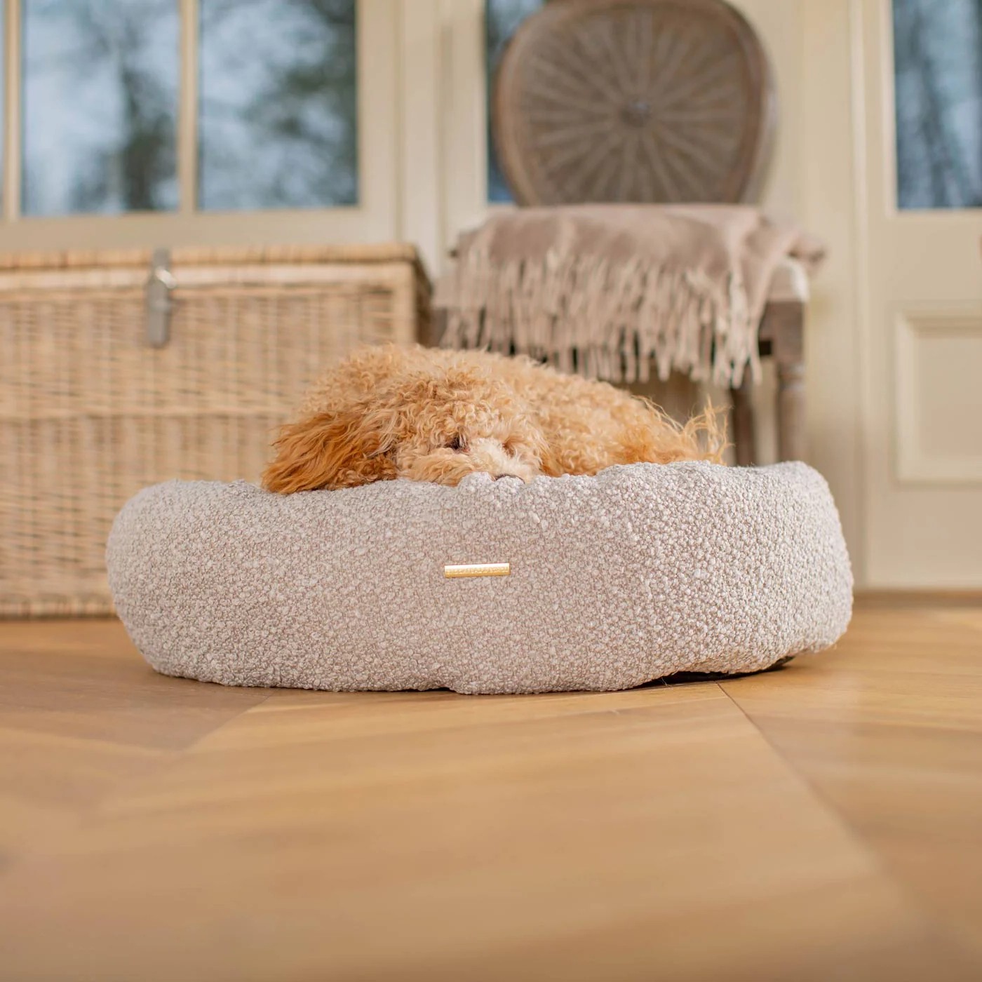 The Donut Bed is the ultimate in comfort for your pup. Handmade in plush Mink Bouclé, it features cushioned walls for added support and a non-slip base for safety. Available in two sizes, this bed is perfect for all breeds. Keep your furry friend cosy and protected with this super-soft, machine-washable bed.